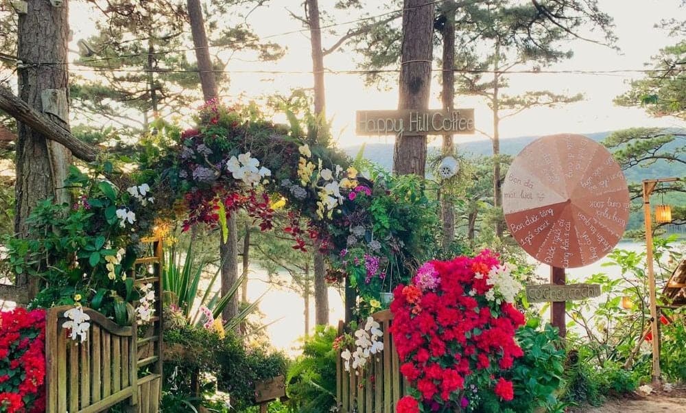 06h30: Đoàn ăn sáng, sau đó làm thủ tục trả phòng. 08h30: Đoàn di chuyển tham quan Mê Linh Garden – Ở Mê Linh Coffee Garden không chỉ có cà phê với hương vị hảo hạng mà Mê Linh còn có một vẻ đẹp rất riêng. Khi bạn ngồi thưởng thức một ly cà phê chồn đúng vị trong một khung cảnh thiên nhiên tuyệt đẹp, thơ mộng và cực kỳ lãng mạn của Mê Linh Coffee Garden, đảm bảo bạn sẽ như được giải tỏa áp, mệt mỏi của công việc và tận hưởng những phút giây thư giãn thoải mái dễ chịu giữa bầu trời Đà Lạt đầy thi vị.Không gian cafe chill chill giữa khu vườn hoa.