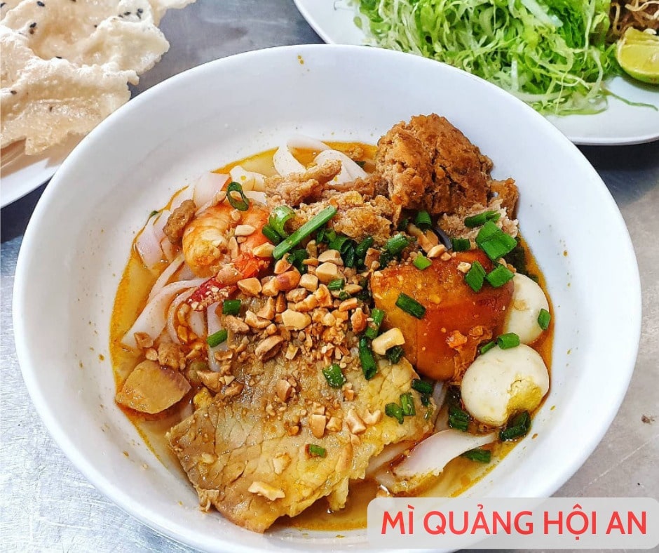 Đã đến miền Trung thì nhất định phải ăn mì Quảng.Trong bát mì Quảng thường có thịt heo, tôm, thịt gà cùng với nước dùng được hầm từ xương heo, sợi mì Quảng màu trắng đục, mềm và dai. Thông thường nước dùng của mì Quảng rất ít, sẽ đem lại cảm giác như ăn một món trộn. Mì Quảng sẽ ngon hơn khi ăn cùng lạc rang, bánh đa, rau thơm, hành thái nhỏ…