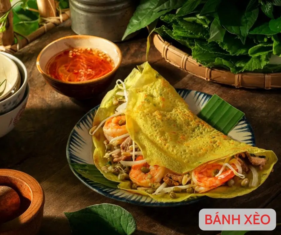 Không giống với bánh xèo miền Nam, bánh xèo Hội An - hay bánh xèo xứ Quảng - có kích thước nhỏ xấp xỉ một bàn tay. Nhân bánh làm từ giá, tôm, thịt… nồng nàn mùi hải sản, bao bọc bởi vỏ bánh vàng ươm giòn tan. Người nấu sẽ đổ bánh xèo khi thực khách đang ăn, để đảm bảo độ nóng và thơm ngon của bánh. Bánh xèo Hội An nếu chỉ ăn không thì rất dễ ngán. Người sành ăn sẽ cuốn bánh trong rau sống rồi thưởng thức cùng nước chấm chua ngọt. Linh hồn cho món ăn đó chính là nước chấm, nước chấm được chế biến tỉ mỉ mà ít nơi nào có thể bắt chước được, bao gồm đậu phộng xay, mè, gan heo sau đó đun sôi.