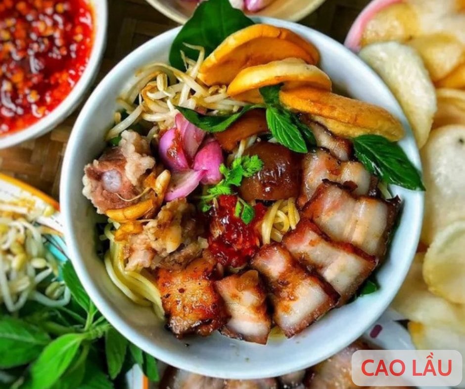 Nhắc tới đặc sản Hội An thì không thể không nhắc đến cao lầu.Không quá lời nếu bảo rằng nếu chưa ăn cao lầu thì xem như chưa từng đến Hội An. Sợi mì cao lầu có màu vàng sáng, do bột được trộn cùng với tro củi tràm tạo nên hương vị đặc biệt. Cao lầu thường được ăn chung với tôm, thịt heo, xá xíu, rau sống…. Nước dùng ít nhưng đậm vị, tạo nên “linh hồn” cho món ăn được xem là tiêu biểu cho nét đẹp xưa cũ của phố cổ.