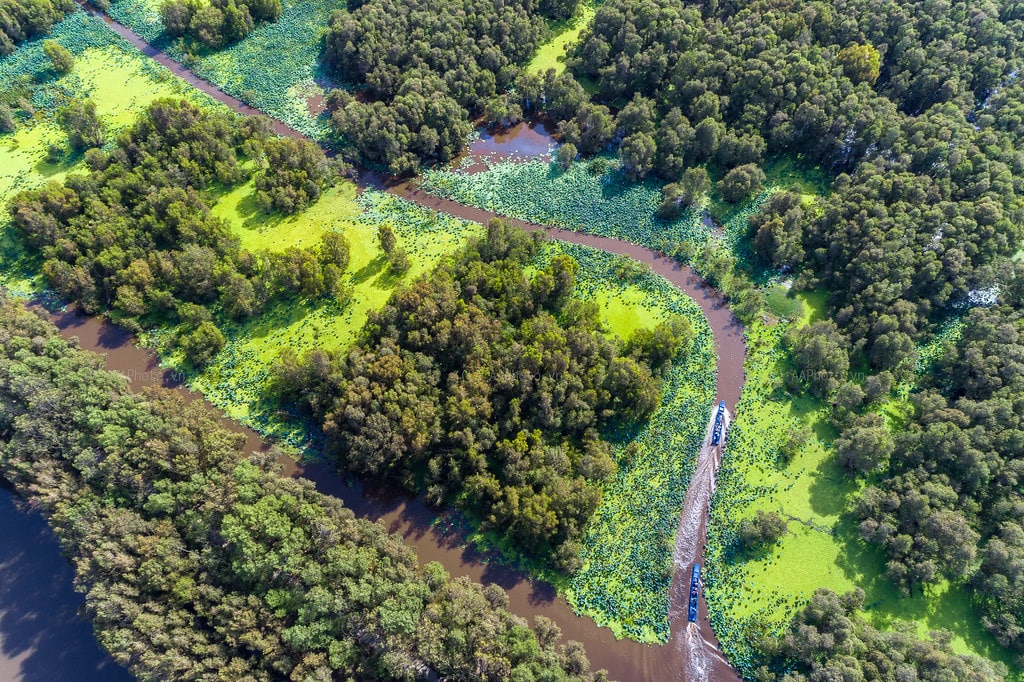 Xuồng chèo quanh rừng tràm