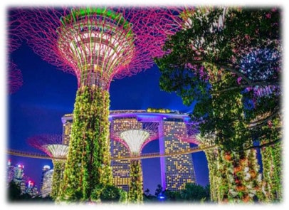 Gardens by the Bay - Flora Fantasy: Lấy cảm hứng thiết kế từ khu vườn treo Babylon để tạo nên khu vườn treo độc đáo này. Nơi đây là sự kết hợp kỳ diệu giữa thực vật và công nghệ 4D. Điểm tham quan đặc sắc không thể thiếu khi đến với Singapore.