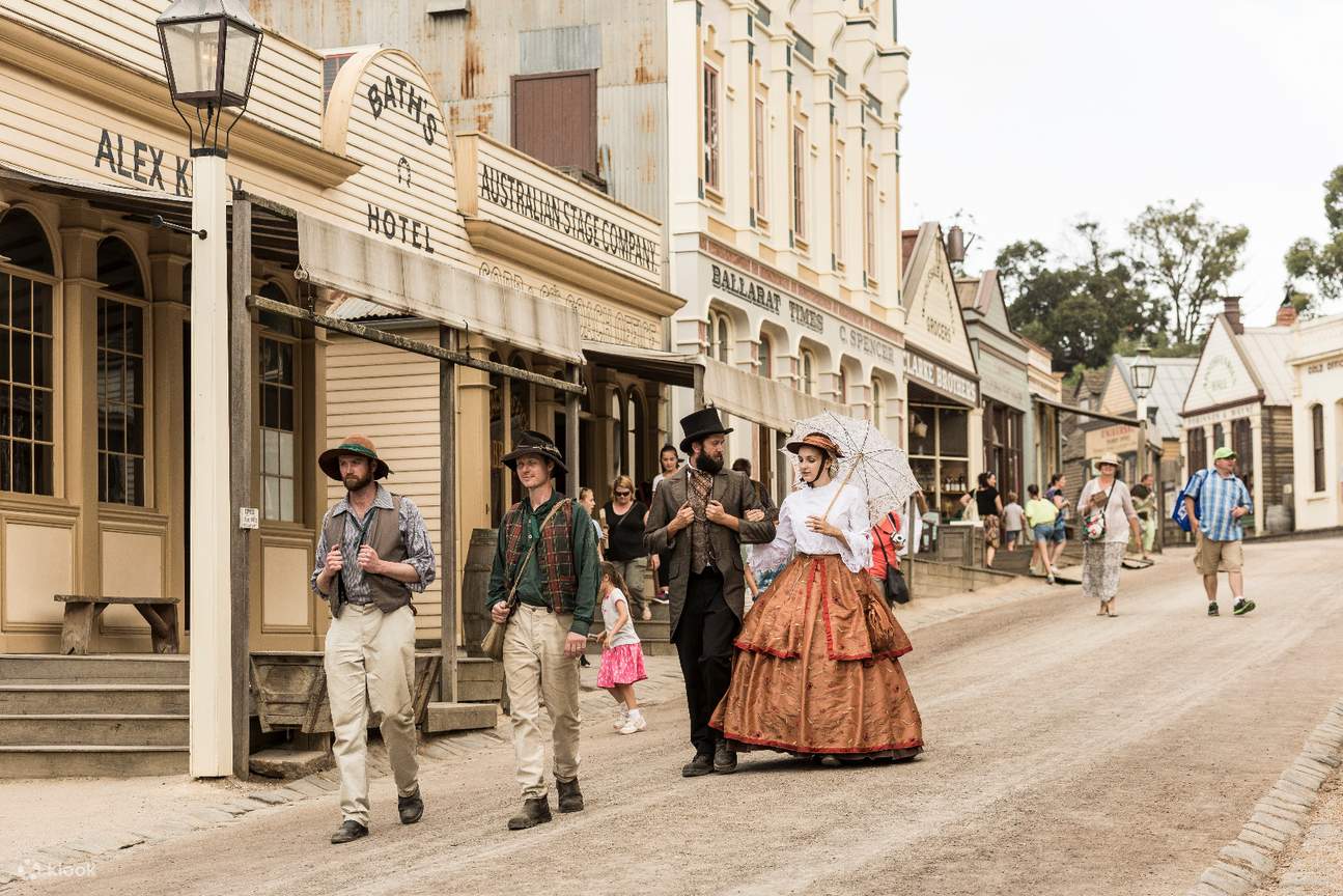 - Đồi Mỏ Vàng (Sovereign Hill) tham quan những dãy phố nhà gỗ gồm các cửa hàng, bưu điện, khách sạn, rạp chiếu phim, xưởng in, lò rèn,.. với không gian giống miền Viễn Tây Mỹ thế kỷ 19 vẫn còn được giữ nguyên đến ngày nay.