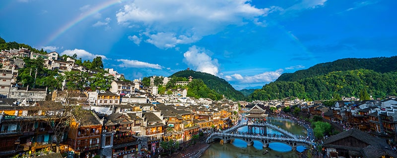 - Cầu Đá Nhảy đặc biệt này được tạo nên nhờ các ụ đá xếp cách nhau. Là địa điểm được yêu thương nhất trong các bức hình của du khách. Ra đời từ năm Khang Hy thứ 43 (1704), vượt qua bao trận lũ cuốn, thăng trầm lịch sử và binh biến loạn lạc, đến nay cây cầu vẫn trường tồn đẹp đẽ như một phần không thể thiếu trong bức tranh lịch sử mang dấu ấn Phượng Hoàng cổ trấn.