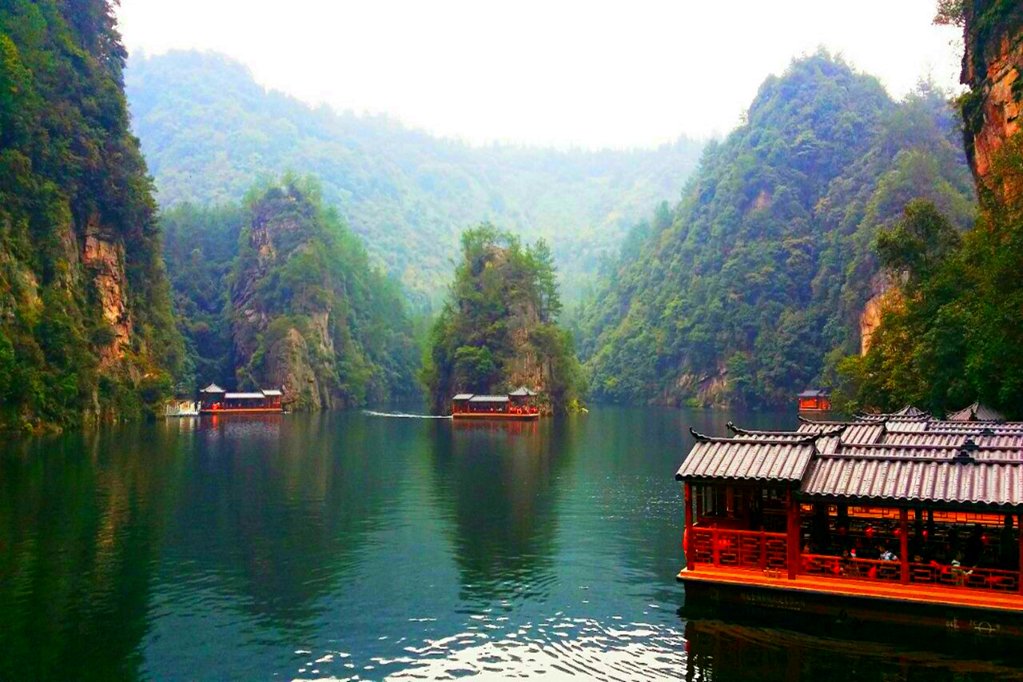 Sáng: Đoàn trả phòng, dùng điểm tâm sáng và tiếp tục tham quan: - Hồ Bảo Phong là một hồ nước ngọt nằm trong khu thắng cảnh Vũ Lăng Nguyên, thuộc tỉnh Hồ Nam, Trung Quốc. Bao bọc xung quanh hồ là những ngọn núi đá vôi sừng sững, cảnh quan thiên nhiên hùng vĩ.