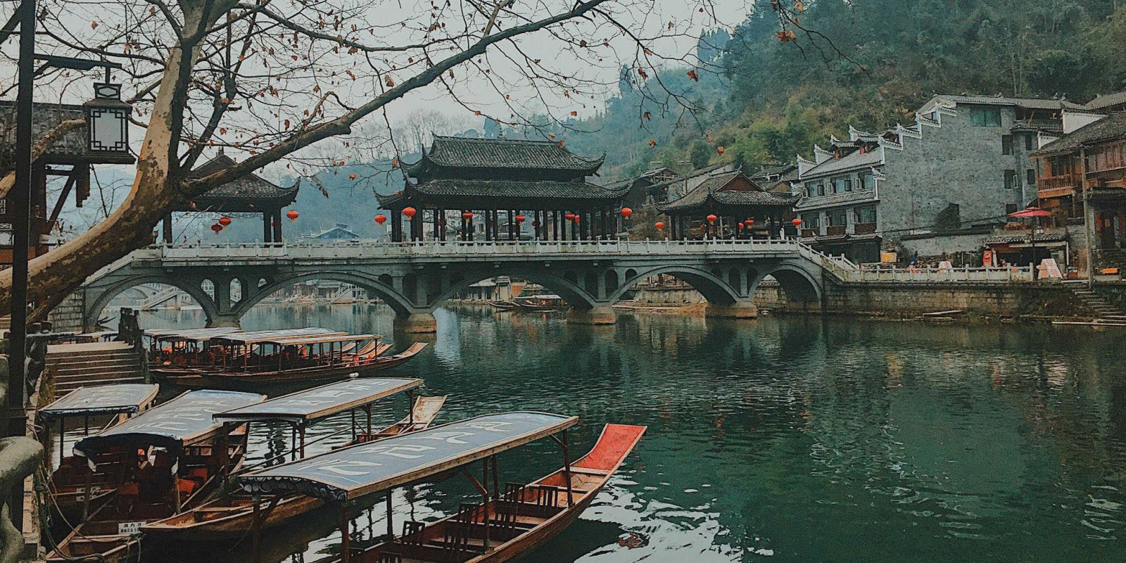 - Cầu Hồng Kiều là cây cầu 2 tầng này được xây chắc chắn bằng đá và gỗ. Dù nhìn từ phía xa hay đi thuyền dưới chân cầu, du khách vẫn cảm nhận được sự to lớn, trầm mặc của cây cầu, như một chứng nhân lịch sử lặng lẽ ở đó suốt hơn 300 năm, cùng trấn Phượng Hoàng trải qua biết bao thăng trầm.
