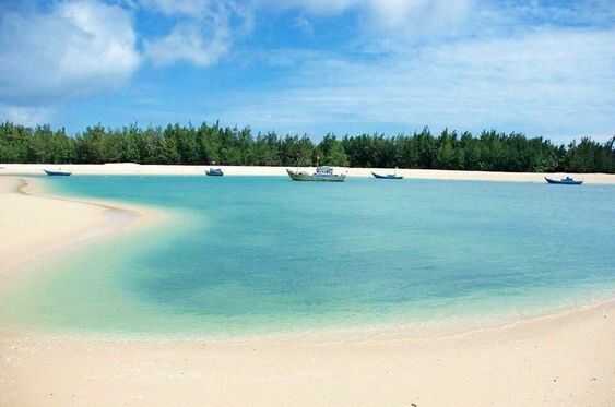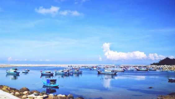 - Vịnh triều Dương -là nơi có có bãi biển đẹp, cát trắng mịn với nước biển trong xanh, êm đềm. Chập chùng xa xa là hàng dương xanh ngát rì rào hòa quyện với tiếng sóng vỗ bờ tạo nên âm thanh dập dìu, thơ mộng làm say lòng bao du khách dừng chân nơi đây.