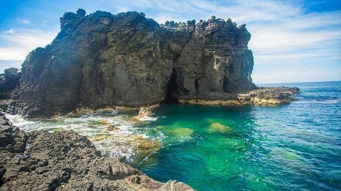- Bãi Nhỏ - Gành Hang (Mỏm đá Đỏ) - Nếu Gành Hang gây ấn tượng với du khách bởi một vách đá sừng sững dựng đứng sát biển, quanh năm là những con sóng va đập vào tung bọt trắng xóa tạo nên một cảnh tượng hùng vĩ thì Bãi Nhỏ ngay dưới chân đồi lại mê hoặc người xem bằng một bãi cát nhỏ hình lưỡi liềm trắng mịn và tinh khiết cực kỳ thơ mộng.