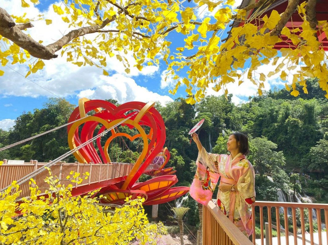 Thác Dải Yếm - Quý khách tự túc mua vé thăm quan Cầu kính Tình yêu - cây cầu kính đầu tiên tại Việt Nam.
