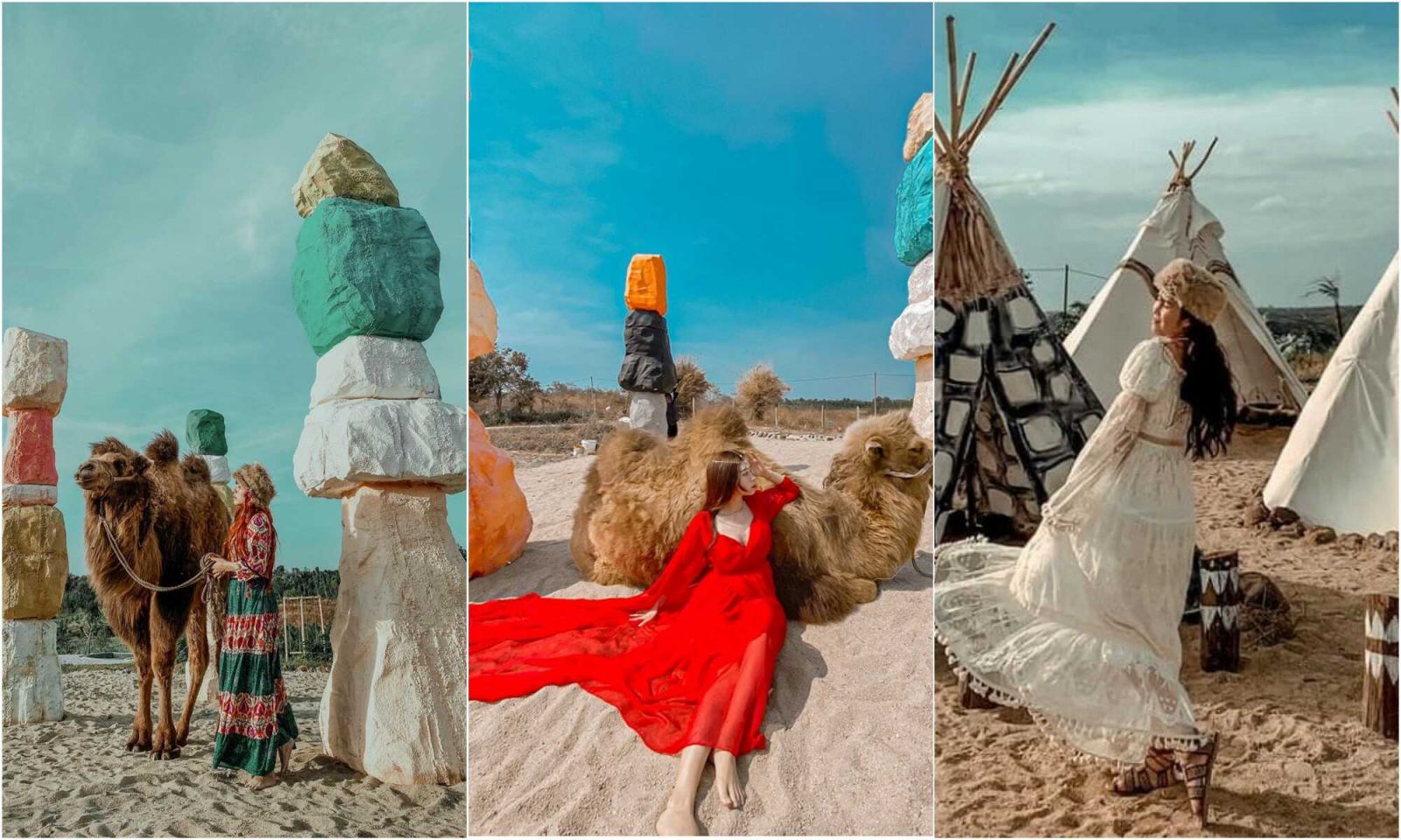- Khu chụp hình dã ngoại Lee’s Hilside: Một Lee’s Hillside mang đậm phong cách Ma Rốc và Mông Cổ. Ở đây được trang trí nhiều background độc lạ như “Dubai thu nhỏ” hay khu vực bãi cát trắng với những khối đá nhiều màu sắc sặc sỡ như: xanh, trắng, đen, cam, nâu… xếp chồng lên nhau. Và đặc biệt quý khách sẽ được check in cùng với những chú Lạc Đà tại đây (chi phí tự túc).