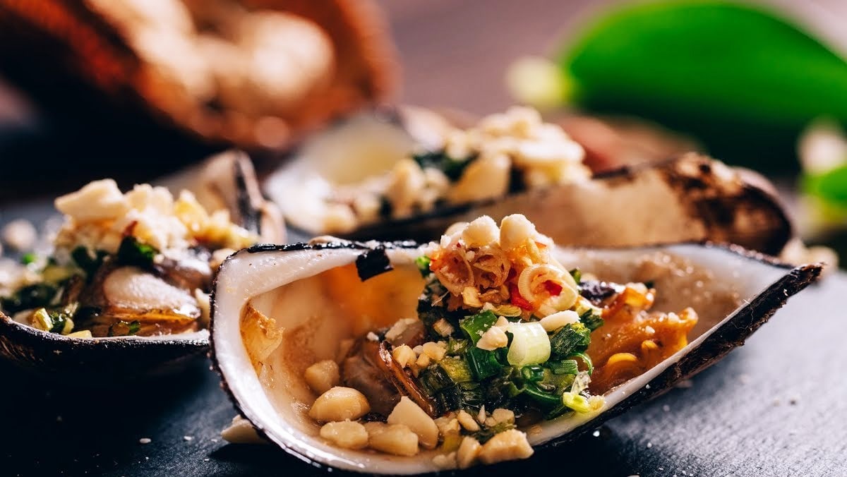 Sò đá có đặc điểm thịt dai chắc và ngọt, con cũng khá to. Từng con được mang nướng trên bếp than hồng nóng hổi tỏa hương nghi ngút, phảng phất mùi thơm của mỡ hành và đậu phộng thật không thể kìm lòng. Món sò đá nướng mỡ hành ăn dai sần sật, béo ngậy, khi ăn sẽ chấm cùng nước mắm chua ngọt.