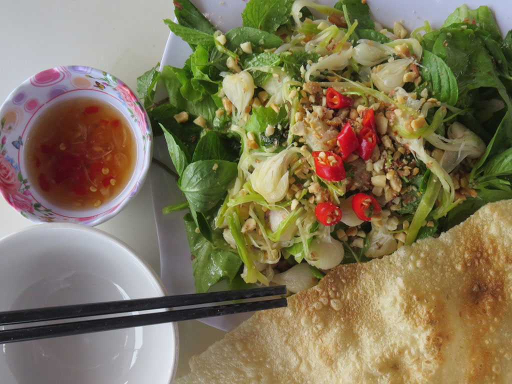 Với những nguyên liệu hết sức dân dã từ những cây tỏi, người dân ở đây đã chế biến ra món gỏi hết sức lạ miệng. Tỏi cây nhổ về, cắt bỏ phần rễ và lá, chỉ lấy phần thân, lột bỏ lớp vỏ ngoài cùng rồi chẻ nhỏ, cắt ngắn rồi rửa sạch để ráo và đem hấp cách thủy. Tỏi chín, người ta mang ra trộn chung với hỗn hợp đường, bột ngọt, tiêu, muối rang, chanh, rồi cho đậu phộng lên. Mùi tỏi thơm thơ và hơi cay tạo cảm giác khó quên. Nếu có dịp du lịch Lý Sơn nhất định bạn phải thử món này nhé.