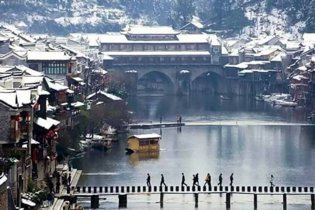 Mùa đông, trấn Phượng Hoàng như chìm vào giấc ngủ đông, mang vẻ đẹp quyến rũ lạ kì. Tuyết phủ trắng những mái nhà, mái ngói cầu khiến nơi đây lặng lẽ hơn. Vào mùa này giá cả đồ ăn và các dịch vụ du lịch Phượng Hoàng cổ trấn cũng rẻ hơn, nếu may mắn bạn còn có cơ hội ngắm tuyết nữa nên nếu không ngại trời lạnh, hãy thử đến đây vào mùa đông nhé!