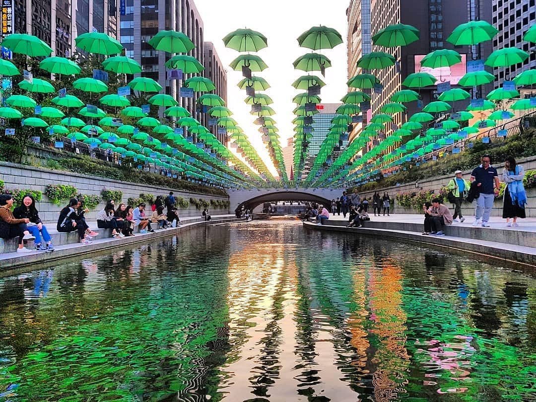 Chụp ảnh tại suối Cheng Gye con suối trong mát dài 5.8 km giữa lòng thủ đô Seoul.
