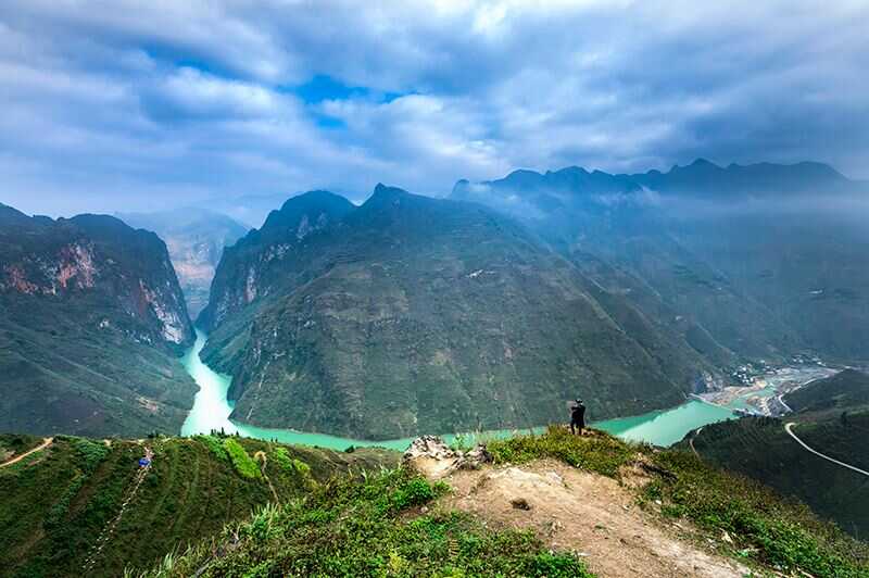 Đứng từ đèo Mã Pì Lèng nhìn xuống chính là con sông Nho Quế mềm mại như dải lụa màu ngọc bích. Đi trên đỉnh đèo 4 mùa bồng bềnh trong mây, nhìn xuống vực dưới sâu hàng nghìn mét, ta có thể ngắm nhìn dòng sông Nho Quế xanh ngắt uốn lượn quanh triền núi và cảm nhận sự hùng vĩ của thiên nhiên được thể hiện qua sự giãn nở của các tầng địa chất tạo nên hẻm vực.