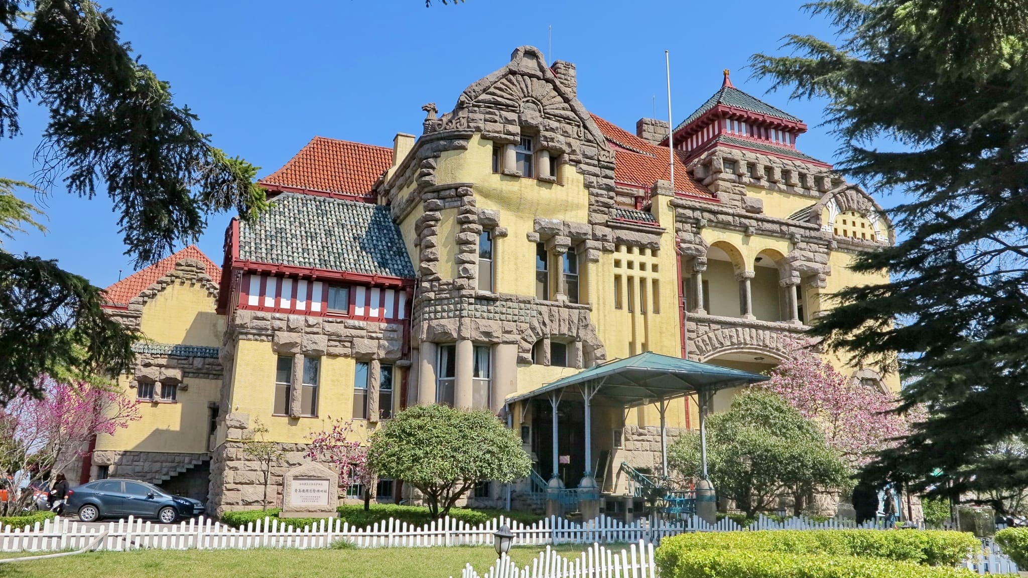 Lưu ý: Các đoàn 9, 16/04 – chương trình sẽ bổ sung điểm ngắm hoa anh đào tại Công viên Trung Sơn – Thanh Đảo. Trưa: Quý khách dùng bữa trưa tại nhà hàng địa phương. Sau đó, đoàn tự do tham quan: - Nhà khách Nghênh Tân – công trình kiến trúc mang phong cách cổ điển châu Âu - từng là nơi tiếp đón nguyên thủ quốc gia và các sự kiện quan trọng của Trung Quốc.