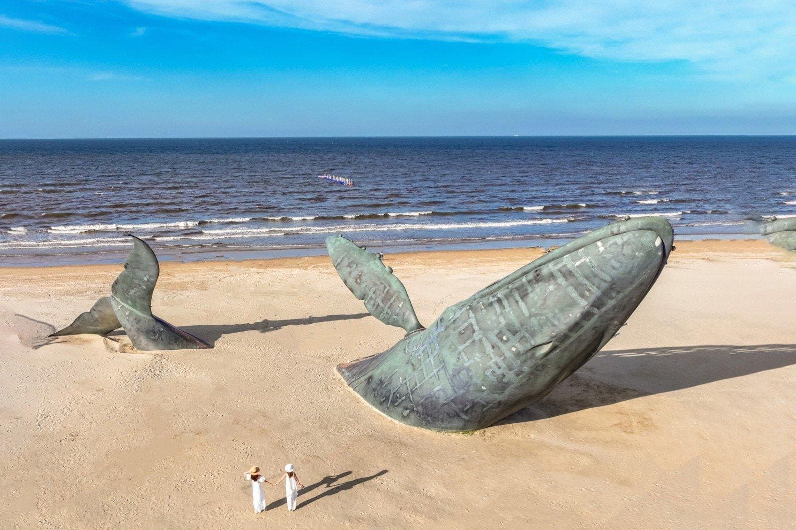 - Cá voi cô đơn (The Lonely Whale) - Một tác phẩm điêu khắc cá voi phun nước nổi tiếng tại Golden Beach (Bãi biển Vàng), là điểm check-in cực hot với hình ảnh chú cá voi khổng lồ như đang "rơi" xuống biển.