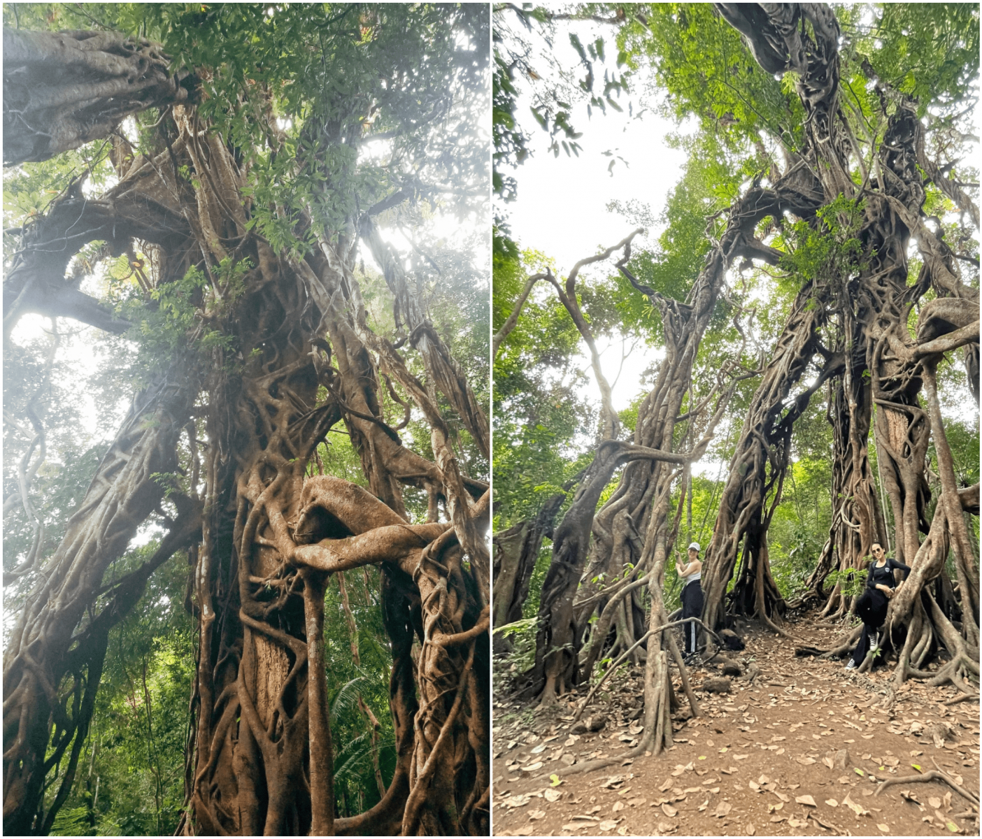 - Cây đa lộc giao,che phủ trên một vùng đất rộng cả ngàn mét vuông, 6 gốc cây đa lực lưỡng, hùng dũng cùng vươn thẳng lên bầu trời, cuối cùng quyện chặt lấy nhau tại đỉnh, cành nhánh đan chéo nhau ra dáng cho một loài cây lạ lẫm. Trên cao, nhiều rễ phụ rủ xuống cắm sâu vào lòng đất, đánh đố những ai tò mò biết được đâu là thân chính, đâu là rễ phụ.
