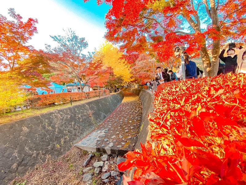 Núi Phú Sĩ - Con đường lá phong Kawaguchiko Maple – Hàng cây phong nằm dọc theo con kênh, thưởng ngoạn và chụp hình dưới những tán lá phong mùa thu và nhìn ra núi Phú Sĩ.